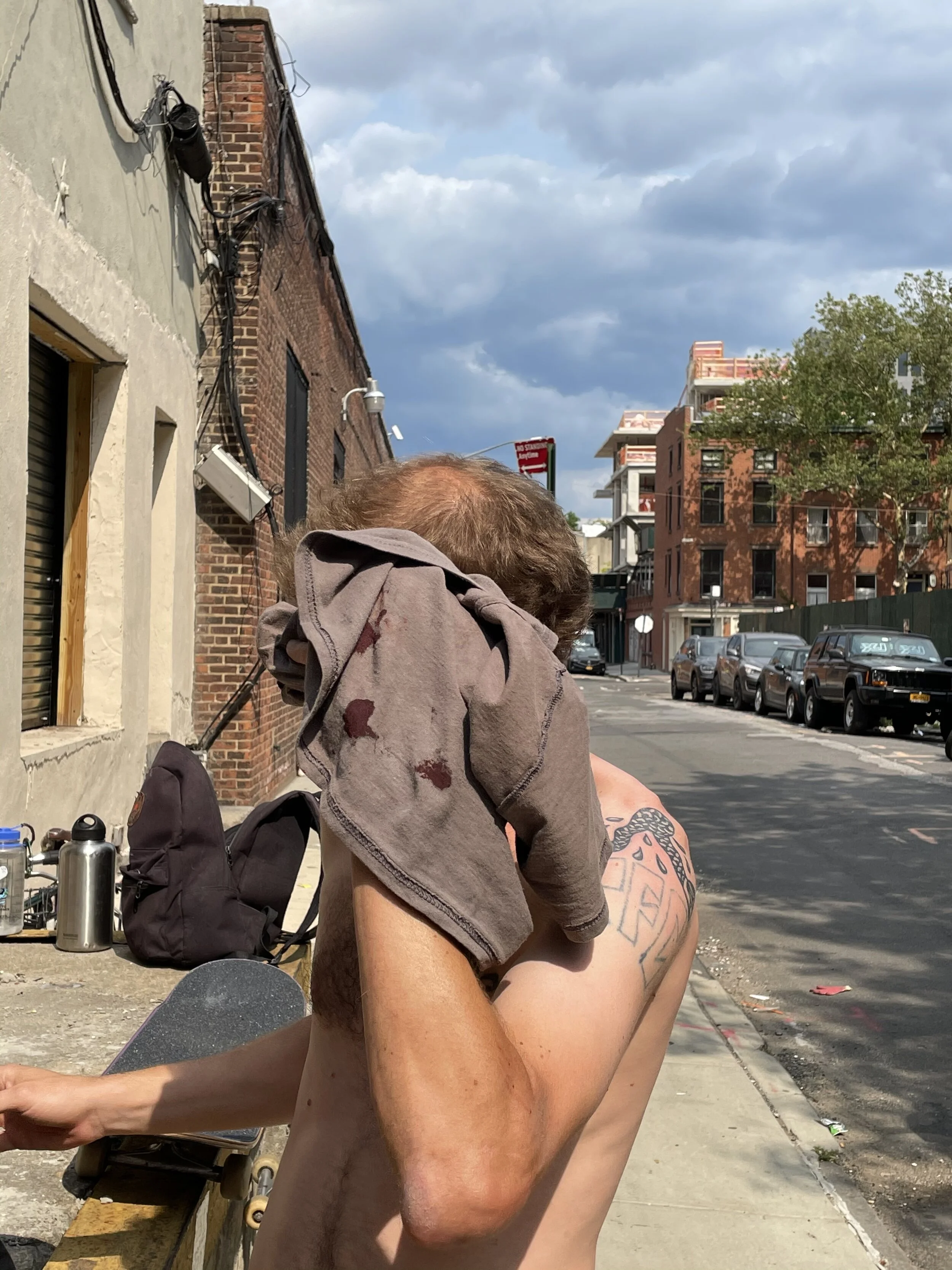 We were skating this spot in Gowanus and I was filming Andrew do backtail. He did it perfect and I was all hyped sayin, we gotta get a photo of that! I convinced him to try again and sure enough, within a few tries his ankle became homied and Karim was hunting him down a bag of ice.